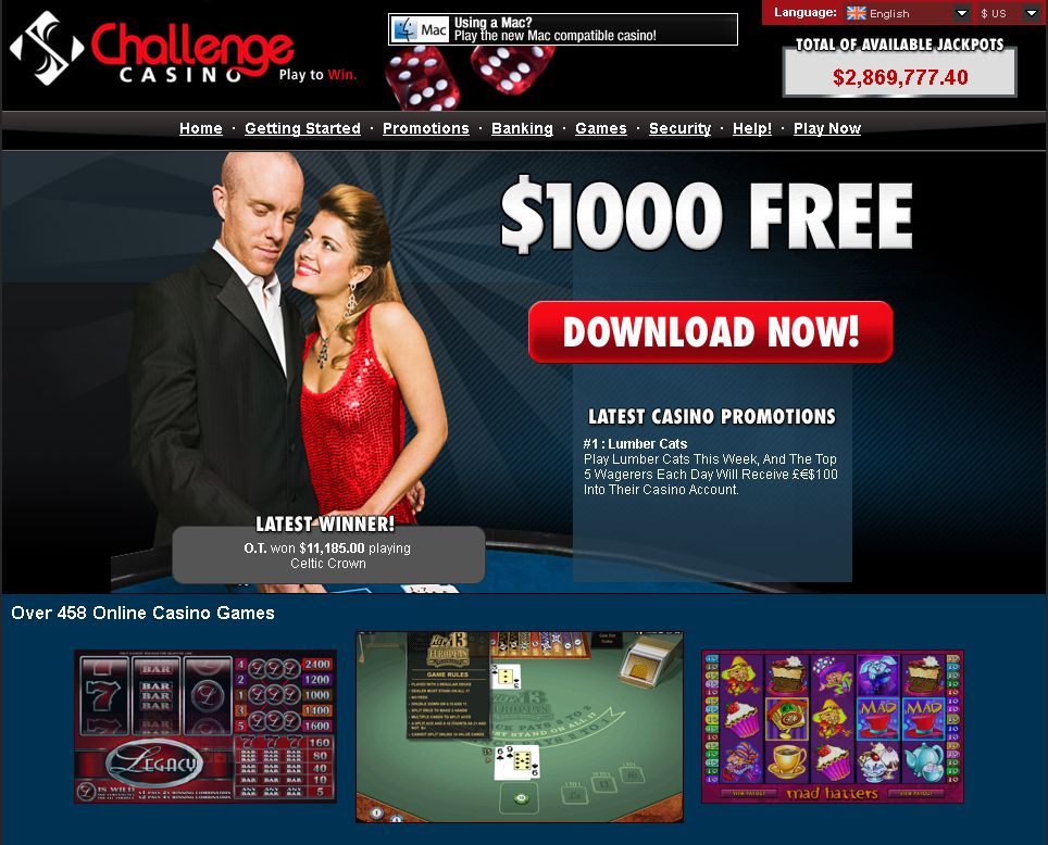 Play With $1,000 FREE at Challenge Casino Receive a bonus on your first 3 deposits, starting with a 25% Match up to $800 FREE on your first deposit!