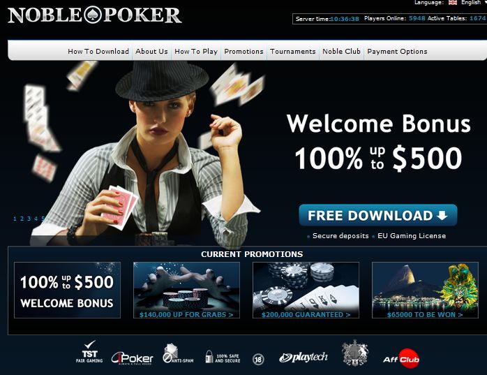Noble Poker offers a range of exciting bonuses and promotions for their new and existing players. New players at the site are eligible for a welcome bonus of a 100% match deposit bonus up to $500 on their first deposit at the site. They offer many exciting promotional tournaments.
